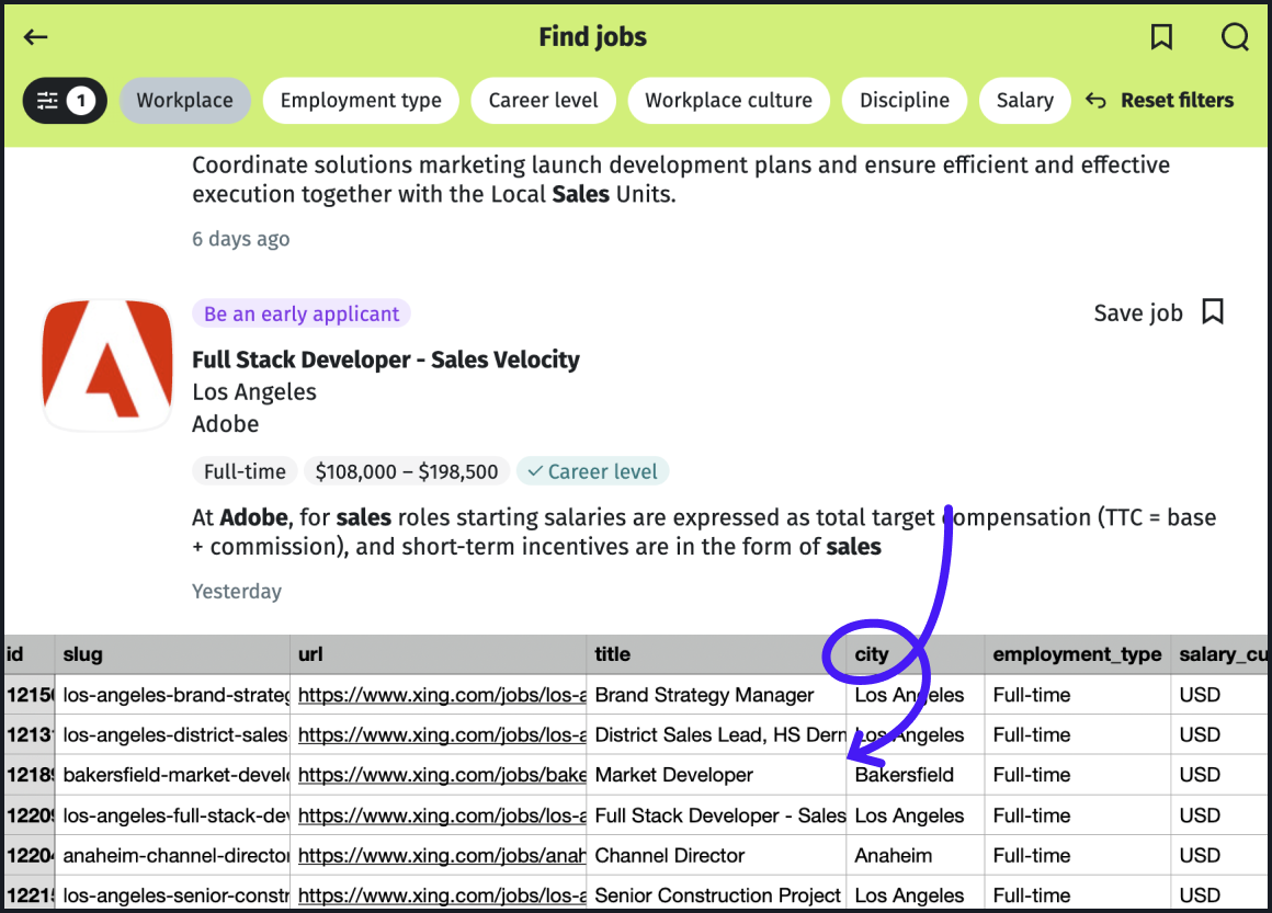 One click to export Xing search jobs result, Save to CSV, Excel and JSON file.
